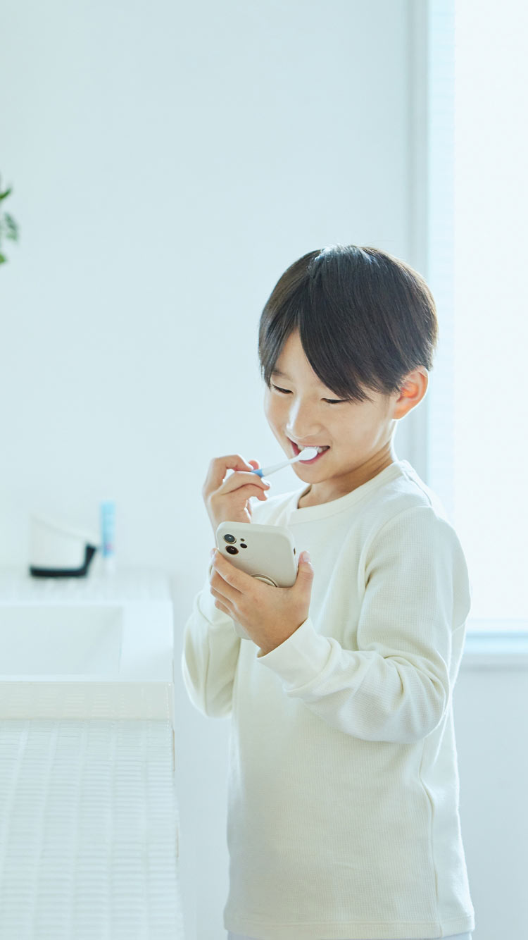 アプリやハブラシポートの音声ナビゲーションを使いながら、みがき方を繰り返し練習して覚えていきます。