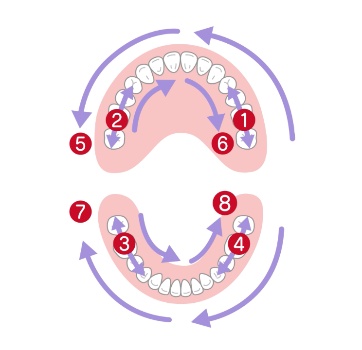 一人ひとりの歯ならびや生え変わり状況に応じた、難易度の高いミッションにステップアップしていきます。