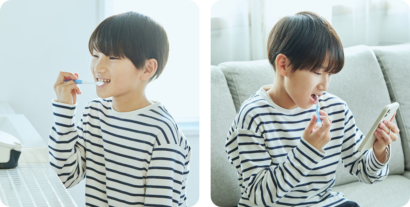 引き続きスピーカーのガイドを聞きながら歯みがきを行うことで、覚えた歯みがきスキルの維持に繋がります。